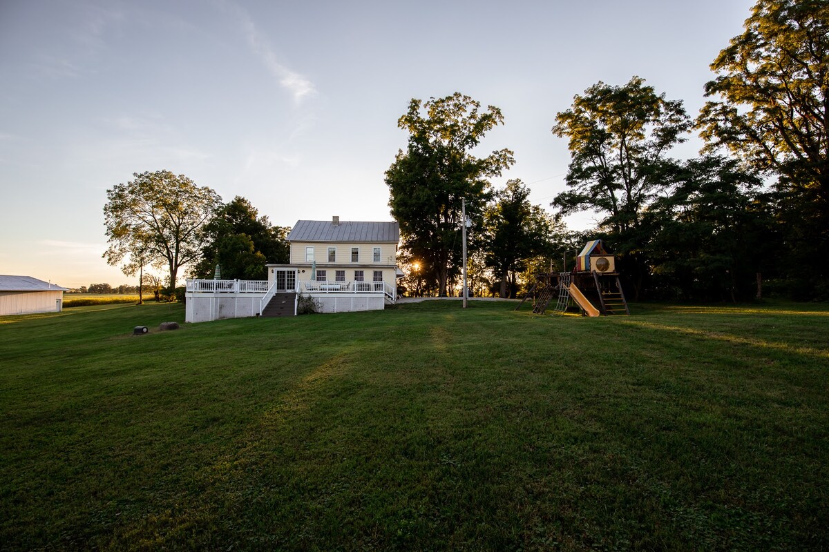 Smith Farmhouse Country Getaway is straight out of a Norman Rockwell painting. This 1850's farmhouse stands proudly with its two levels and 4 bedrooms sleeping 12 comfortably. Set on a peaceful and beautiful piece of land, this treasured home is perfect for women's getaways, guys weekends, couples romantic weekends, family gatherings and group retreats. The Smith Farmhouse in Galion gives an authentic glimpse of romantic years gone by.
