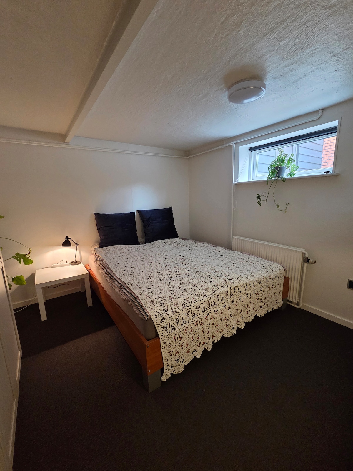 Vive a poca distancia del bosque y la playa, y con el jardín justo al lado de un lago escolar con grandes áreas verdes. Granja con muebles de comedor y chimenea. Te alojarás en el sótano, que tendrás para ti solo, con 2,05 metros de altura. Habitación grande con mesa de comedor y cama de matrimonio. Habitación pequeña con cama de 120 cm de ancho. Gran baño nuevo con ducha. Cocina con nevera y horno pequeño. 200 metros a la panadería. 1,7 km a la calle peatonal. A 3,6 km del parque de vacaciones Jesperhus. A 300 m de un gimnasio, pista de pádel y parque infantil.