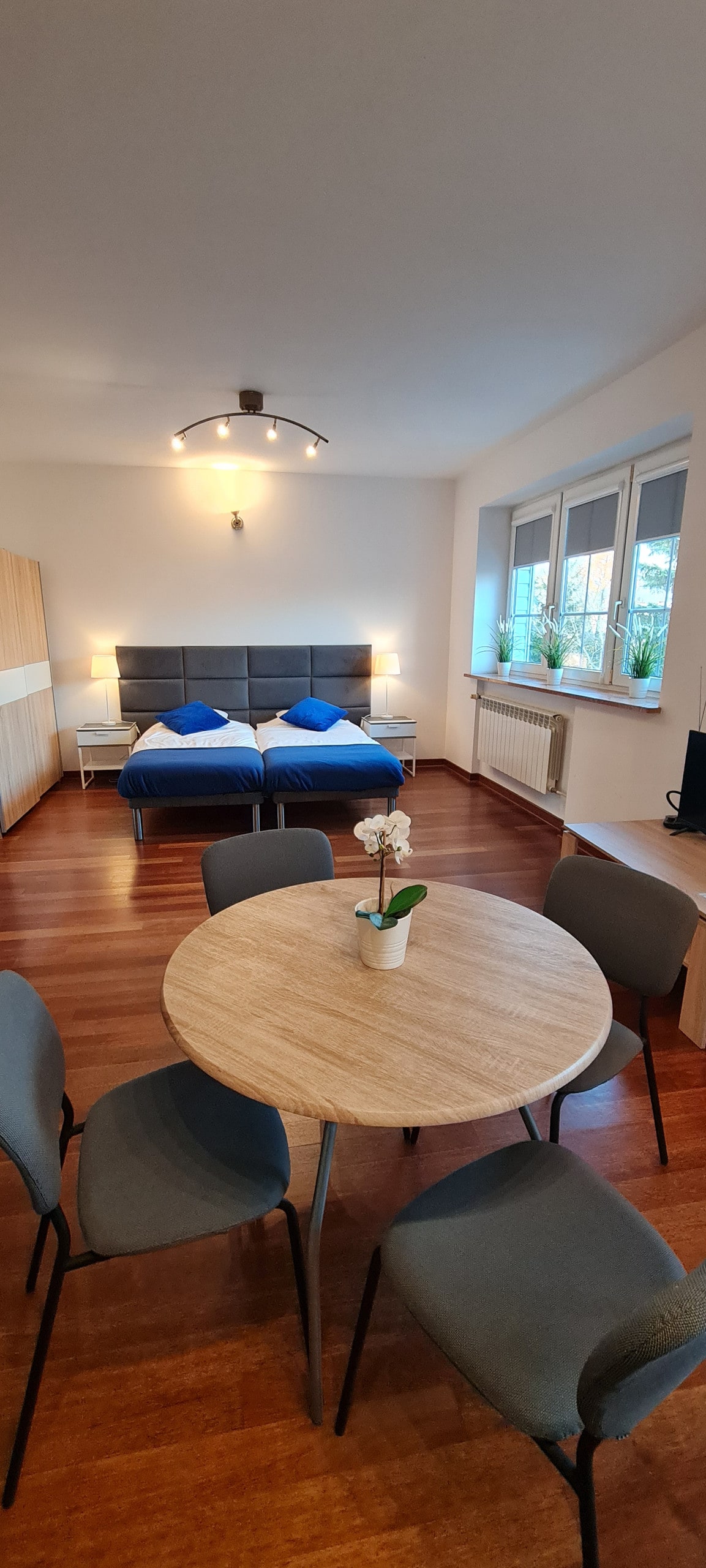 Paz, tranquilidad y hermosas circunstancias naturales te esperan a solo 35 km de Varsovia. Alquila un departamento en la primera costa de la laguna en el complejo hotelero “Apartments nad Zegrzem”. El departamento es completamente nuevo, decorado con atención a cada detalle, con un balcón y una vista del bosque de pinos y agua:) Una habitación para dos. Disponible para los huéspedes: cancha de squash, gimnasio, billar, una enorme zona boscosa con acceso directo a la costa.
