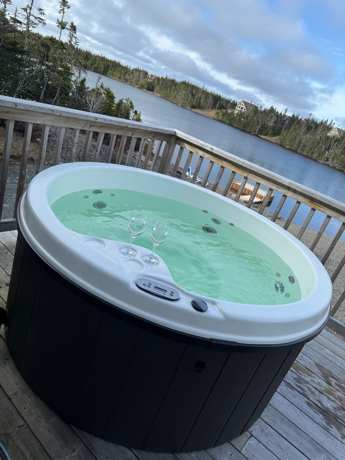Ten en cuenta que no se añaden gastos de limpieza adicionales y un 10 por ciento de descuento para 5 noches o más. Relájate bajo el porche artesanal cubierto de esta nueva belleza diseñada a medida. La casa cumple todos los requisitos: máxima privacidad, amplia terraza con jacuzzi, techos abovedados con vigas y un rincón de lectura. Situada en South River, cerca de Cupids/Brigus, a pocos pasos del mar y a 7 minutos a pie de la destilería Nl. Estamos a 45 minutos al oeste de St. John's. La elegancia sencilla de esta casa es refrescante para el alma.