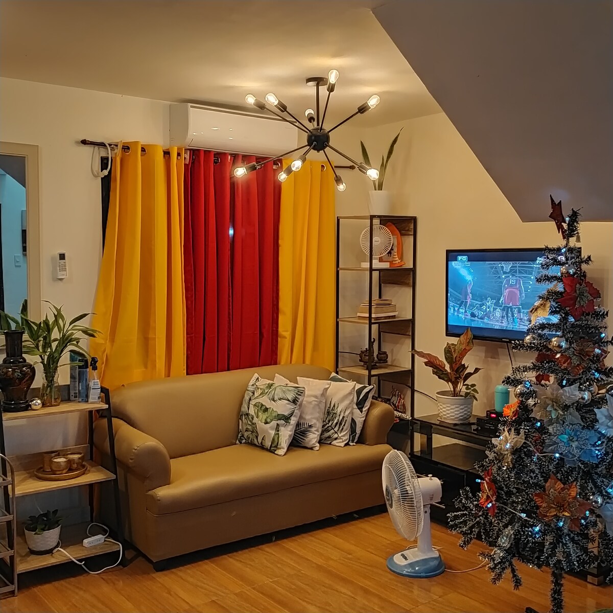 Adecuado para parejas, familias o grupos de 8 personas como máximo. Puedes disfrutar de toda la casa con 1 habitación con aire acondicionado utilizable si hay 1-4 huéspedes y 2 habitaciones con aire acondicionado. si 5-9 huéspedes. Con un inversor de 1.5Hp recién instalado en la sala de estar y el comedor. ( con tarifa adicional si se usa. Cable estándar con YouTube solamente. Con ducha recién instalada con calentador. Solo se permite cocinar suave. A 1 km de Puregold,Dagat Cusina,Girasoles Farm , Bangihan ni Kuya y a 800 METROS de Candelaria.