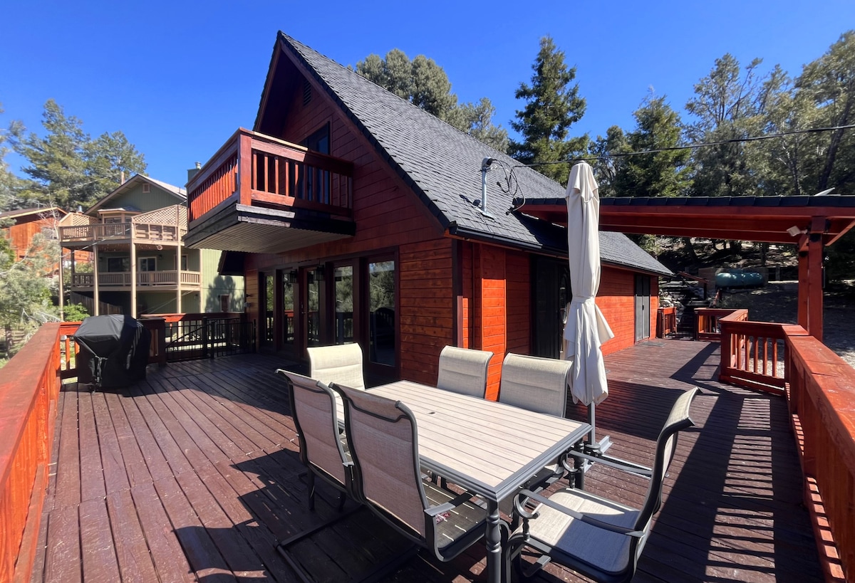 Nuestra cabaña se trata de relajarse y reconectar con la naturaleza. Respira el aire fresco del bosque y disfruta del ambiente tranquilo que ofrece Pine Mountain Club. También hay muchas oportunidades para jugar al golf de nuevas aventuras, rutas de senderismo, explorar cascadas y pescar en un lago. Piscina pública y jacuzzi con uso estacional. Nuestra moderna cabaña de montaña tiene capacidad para 4 personas y tiene una acogedora estufa de leña con 2 terrazas soleadas con vistas a la montaña. Wifi y barbacoa, cocina gourmet.