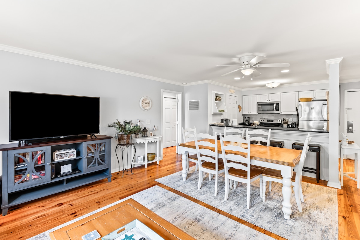 Disfruta de esta espaciosa villa en el segundo piso con un dormitorio grande y una habitación adicional que se puede utilizar como segundo dormitorio o espacio de trabajo. Las amplias ventanas del comedor ofrecen vistas a la laguna y a los robles vivos. La cocina está totalmente equipada con electrodomésticos de acero inoxidable nuevos; el baño está reformado con buen gusto. Se proporcionan sillas de playa, sombrillas y toallas. Wifi y televisores inteligentes de pantalla plana en todas partes. El amplio dormitorio y la sala de estar te invitan a relajarte después de pasar el día en la playa, la cancha de tenis o el campo de golf.