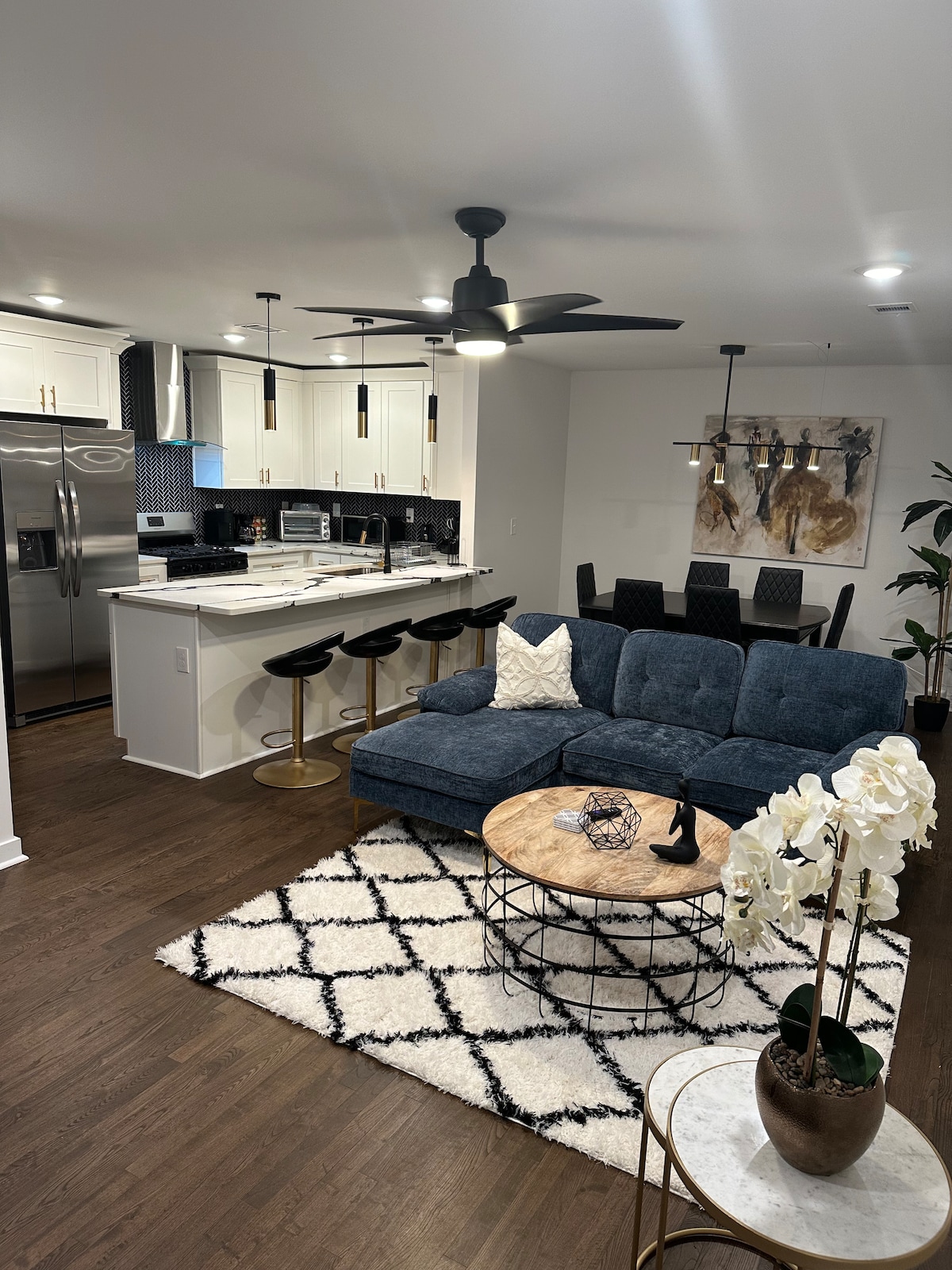 Elegante refugio en la casa trasera con acabados prémium. Amplio dormitorio con cama tamaño king y TV inteligente, además de sala de estar con su propio televisor. Cocina totalmente equipada con artículos básicos, utensilios de cocina, cafetera y freidora de aire. El baño tiene dos entradas para la privacidad. Las comodidades incluyen lavandería en la unidad, mesa de comedor para 6 personas para reuniones o trabajos remotos y estacionamiento en el garaje. La despensa incluye elementos básicos para que puedas instalarte de inmediato. ¡Tu tranquila escapada al centro con total privacidad!