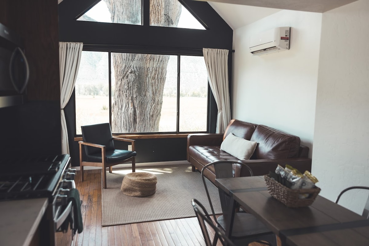 ¡Te damos la bienvenida al valle! Esta es una de las minicasas de lujo en Basecamp 550. ¿Qué lo hace de lujo? Bueno, es más grande que cualquier otra vivienda en el campamento con la friolera de 400 pies cuadrados de espacio. Esta minicasa cuenta con los servicios de un alojamiento a una escala mucho más pequeña, pero sigue siendo cómoda para un máximo de cuatro personas. ¡Los muebles recogidos a mano y la vasta ventana y terraza hacen que esta unidad sea muy especial con vistas de primera clase!