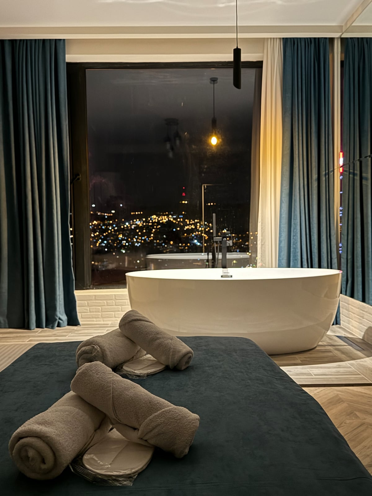 This is a comfortable renovated apartment with exposed brick that has a true Tbilisi feeling. This studio has a transparent bathroom with modern bathtub, king size bed, Chesterfield sofa and etc. The Space (78 sq.m) fits 2 & is located on Old Tbilisi district, on parallel street of main avenue of Georgia Shota Rustaveli Ave. High speed WIFI Internet & IPTV is provided free of charge. Apartment is also well located for transport Metro Freedom Square & Rustaveli stations are walk distance.
