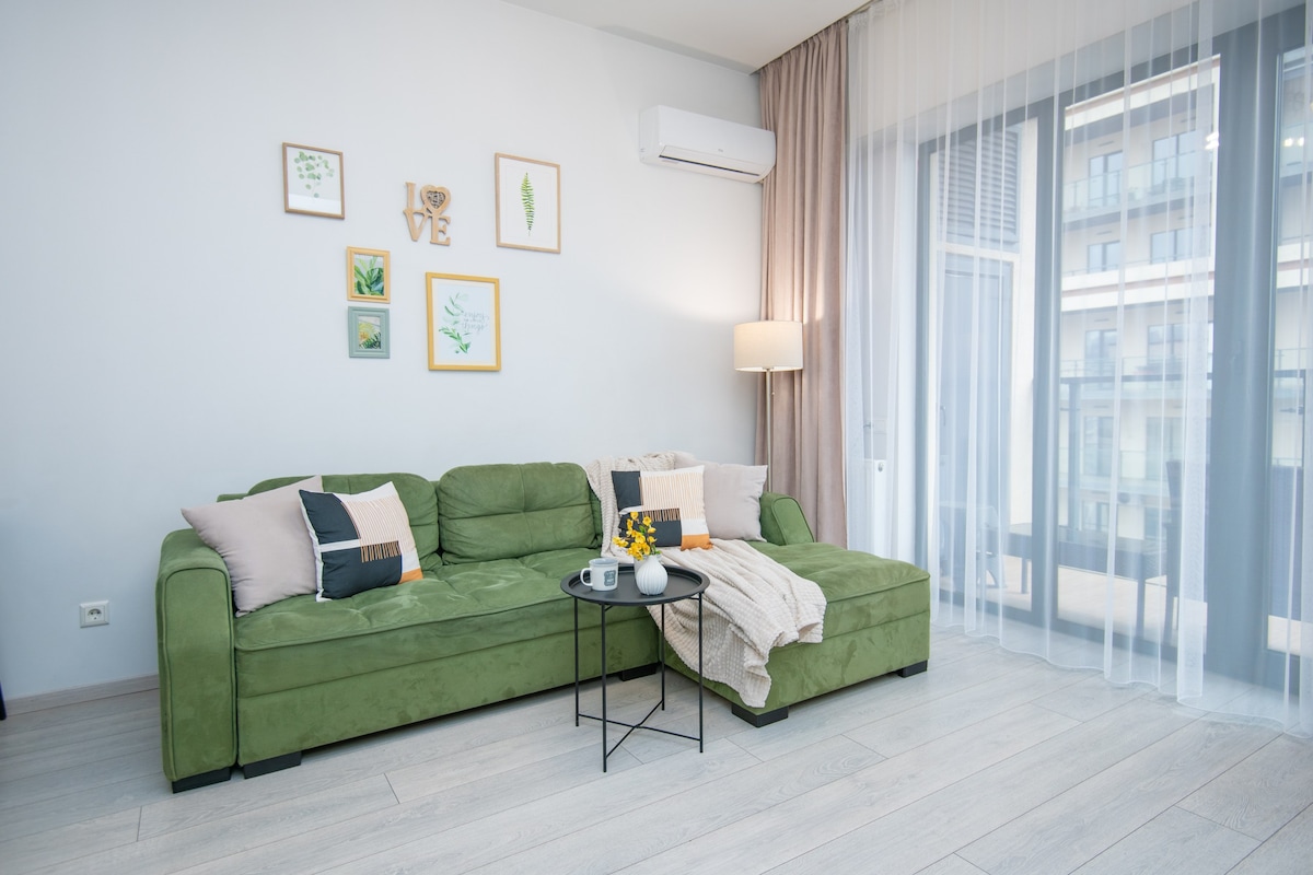 Experimenta el encanto de un acogedor y moderno departamento de un dormitorio, meticulosamente diseñado para proporcionar comodidad y conveniencia. Se ha considerado que cada detalle crea un refugio hogareño, equipado con todo lo esencial para una estancia sin complicaciones. Situado en el animado barrio de Central Saburtalo, tendrás fácil acceso a muchas opciones gastronómicas, lugares de entretenimiento y distritos comerciales.