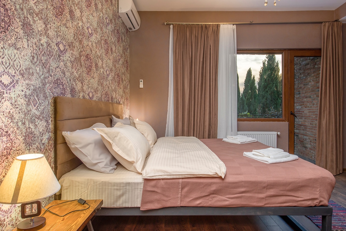 Bienvenido a Tatin, un encantador hotel ubicado justo al lado de las murallas históricas de la catedral de Svetitskhoveli en el corazón de Mtskheta, la antigua capital de Georgia. A solo 15 kilómetros de las bulliciosas calles de Tiflis, puedes llegar a Mtskheta, la ciudad más histórica y tranquila de la región. Tatin ha sido parte de este paisaje desde 2016, inicialmente como cafetería. Hace un año, ampliamos nuestras ofertas para incluir dos habitaciones de hotel bellamente decoradas.