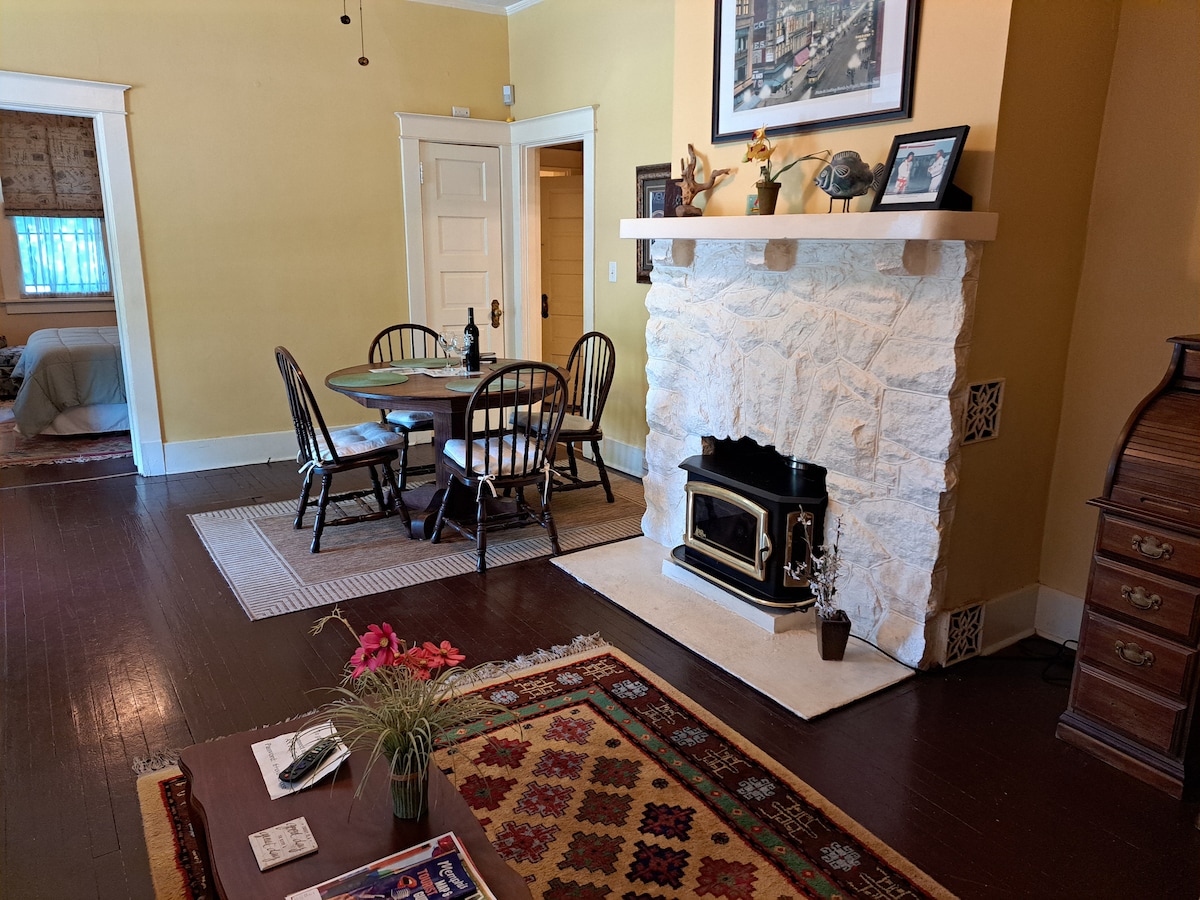 Whispering Oak fue construida con cariño en 1908 por la familia Mothershed. Está adornada por un enorme roble que sostiene un columpio. Hemos dividido la casa en dos apartamentos privados. Secret Hideaway está a la derecha. Hay 3 habitaciones amplias. Sala de estar/comedor con cocina americana contigua, dormitorio grande con armario con baño de lujo en suite con ducha a ras de suelo. Hay un precioso porche delantero con columpio que ofrece increíbles vistas al atardecer y un hermoso patio trasero con un gran pórtico cubierto.