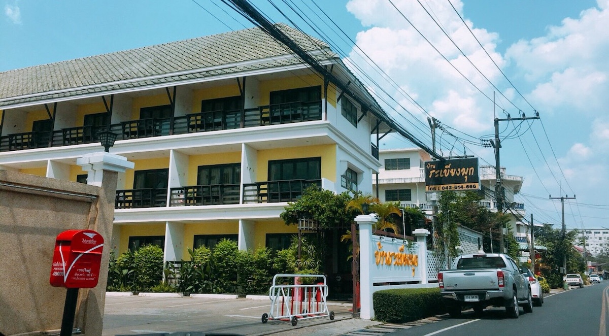 ¡Quédate en Tailandia, pero siente ganas de explorar Laos en el mismo viaje! Habitaciones nuevas y limpias en una ubicación conveniente cerca del Puente de la Amistad Tailandia-Laos y el río Mekong. Una estancia te da la experiencia de dos países. Cerca de los mejores lugares de Mukdahan: Templo Phu Manorom (Gran Buda), Torre Mukdahan, Mercado de Indochina y vistas panorámicas del Mekong. Disfruta de un desayuno caliente todas las mañanas, perfecto para viajeros, excursionistas y estancias fáciles y cómodas.