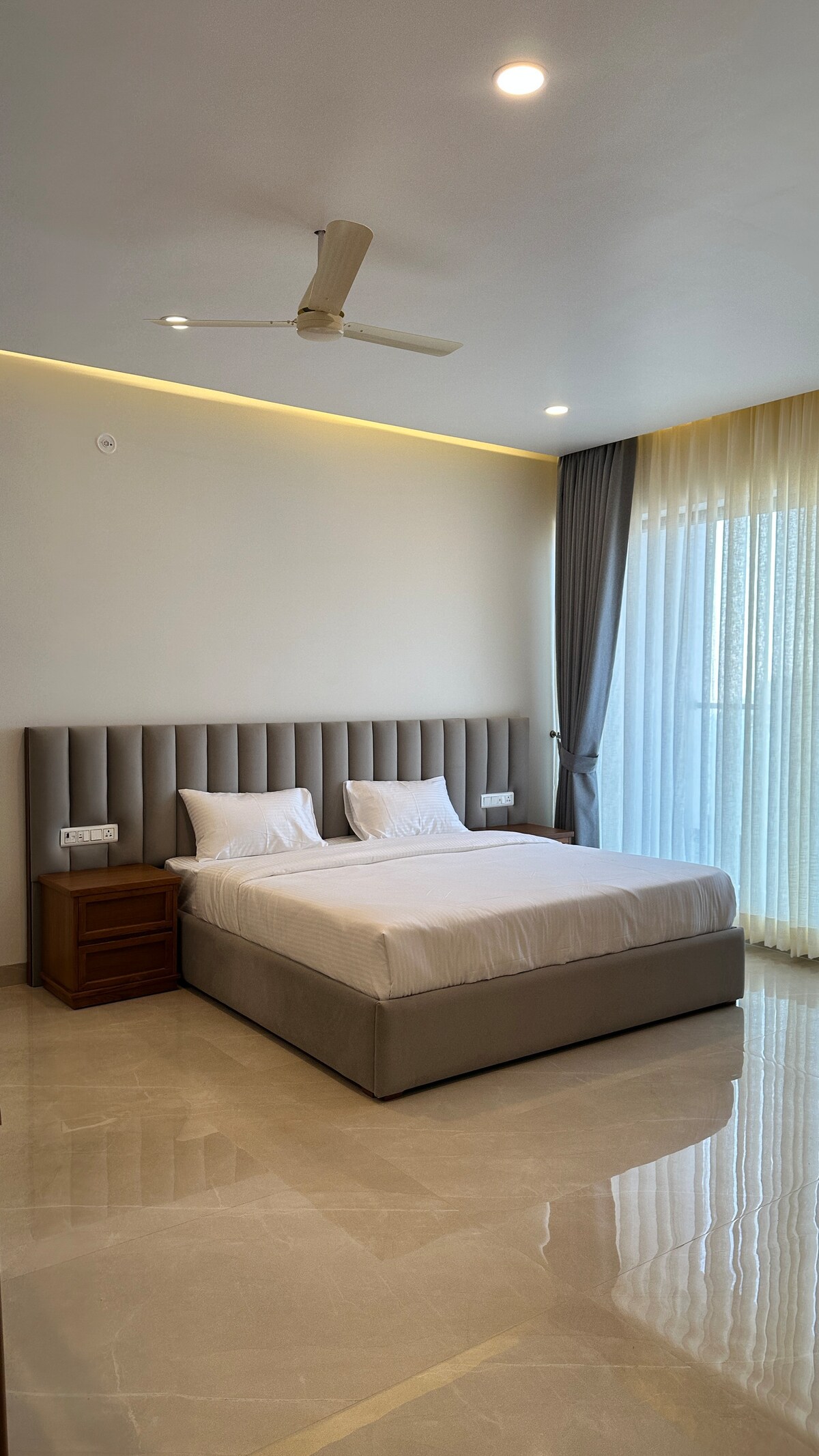 Este es un apartamento de 2 bhk que cuenta con dos dormitorios adjuntos con baños y una sala de estar con sofá cama doble unido a un baño y un balcón. El área del césped es común para todos los huéspedes. El restaurante está abierto desde las 8 de la mañana hasta las 10 de la noche. Servicios como servicio de limpieza , servicio de habitaciones, wifi , respaldo de energía, estacionamiento disponible. La propiedad no admite mascotas. Los detalles no están incluidos en este precio.