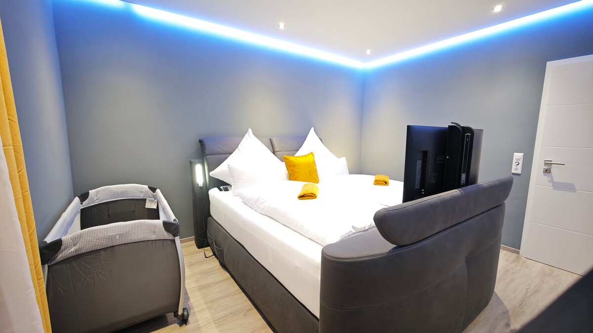 Un hermoso apartamento en el ático con vistas a todo Koblenz. La gran terraza en la azotea con sauna de barril y ducha al aire libre te invita al bienestar, y la puesta de sol es única. Comodidades de última generación, desde aire acondicionado hasta una ducha a ras de suelo y una cama con somier, sin dejar nada que desear. A petición, también podemos hacer que sea apto para niños y familias: se puede reservar opcionalmente una cuna y una silla alta. Súper conectado en coche y transporte público, ideal para vacaciones, viajes de negocios y mucho más.
