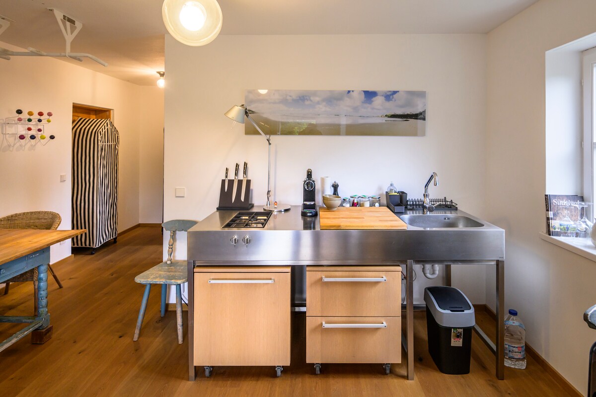 Moderno apartamento vacacional para 2 personas en una casa ecológica de madera en el lago Starnberg. El apartamento de 50 metros cuadrados con La entrada tiene una amplia cocina con vistas al sur del bosque, montañas y lago, un dormitorio y un baño. En unos 10 a 20 minutos puedes caminar hasta el Parque Natural Bernrieder y la orilla del lago con numerosas calas de ensueño para nadar. En la propiedad hay un estacionamiento privado disponible. Hay un espacio de almacenamiento para bicicletas.