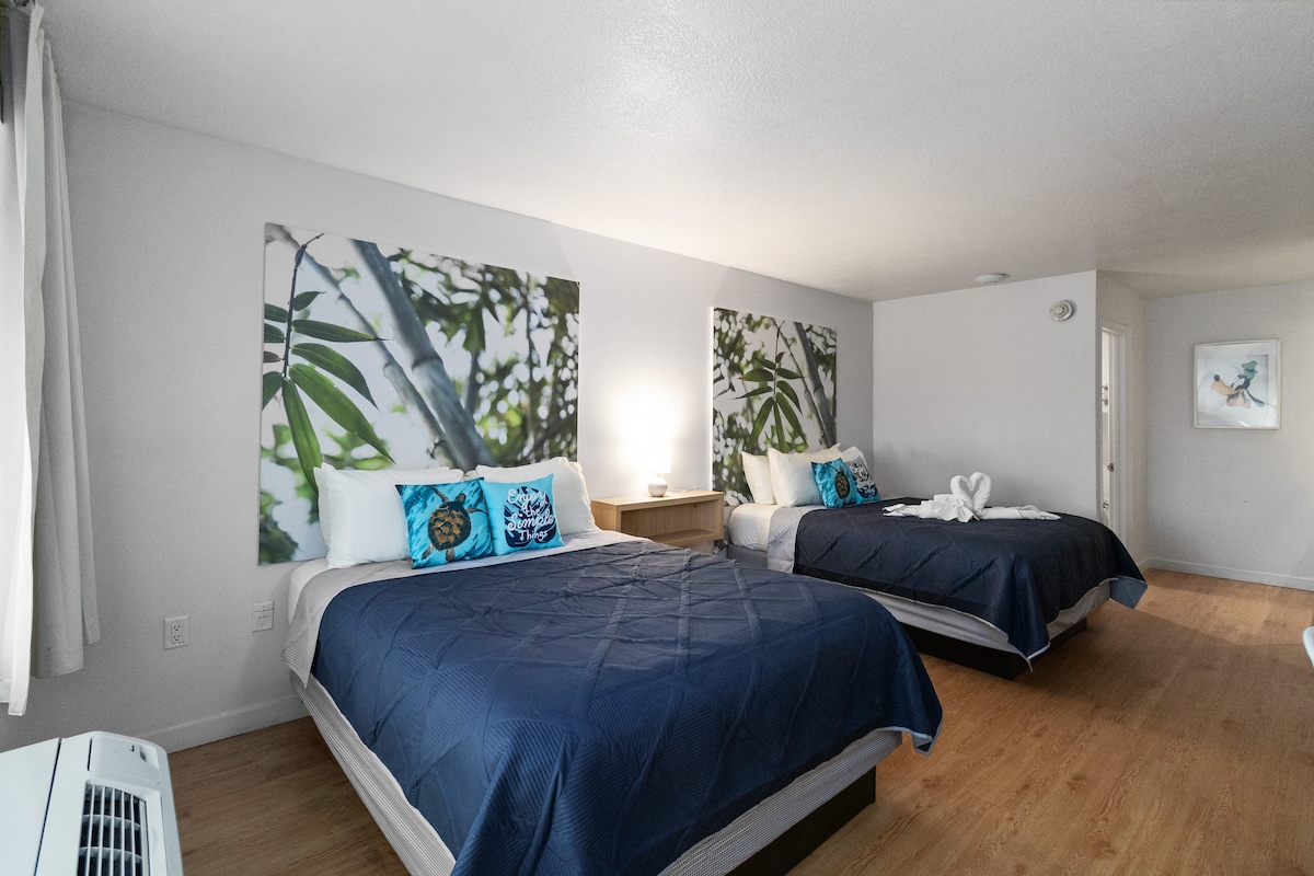 ¡Trae el espíritu aloha a tu viaje a Disney en este estudio temático de Lilo & Stitch en Legacy Grand en Kissimmee! A solo 4 millas de Walt Disney World, esta escapada tropical cuenta con dos camas tamaño queen con marcos “flotantes” de LED brillantes, murales vibrantes y detalles de personajes en todas partes. Los huéspedes disfrutan de comodidades de estilo hotelero, como una piscina, transporte a los parques y lavandería en el lugar, lo que hace de este divertido refugio la combinación perfecta de comodidad y diversión.