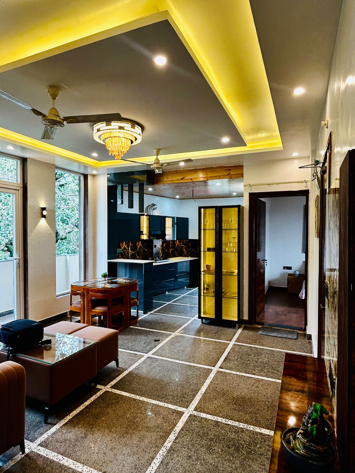 Olvídate de tus preocupaciones en este espacio espacioso y sereno. Nuestra casa de huéspedes tiene vistas a un gran y exuberante jardín verde. La terraza ofrece una vista de 360° de las montañas. Puedes disfrutar de la noche en tu propio patio y disfrutar de la barbacoa. La casa de huéspedes es espaciosa con 1 dormitorio de diseño, baño adjunto, una cocina totalmente equipada y tu propio patio personal, lo que la convierte en un hogar perfecto lejos de casa. - Mussoorie: 18 km - Cueva del ladrón, Sahastradhara - 20 minutos - Wifi gratuito, Netflix - Famosos restaurantes cercanos.