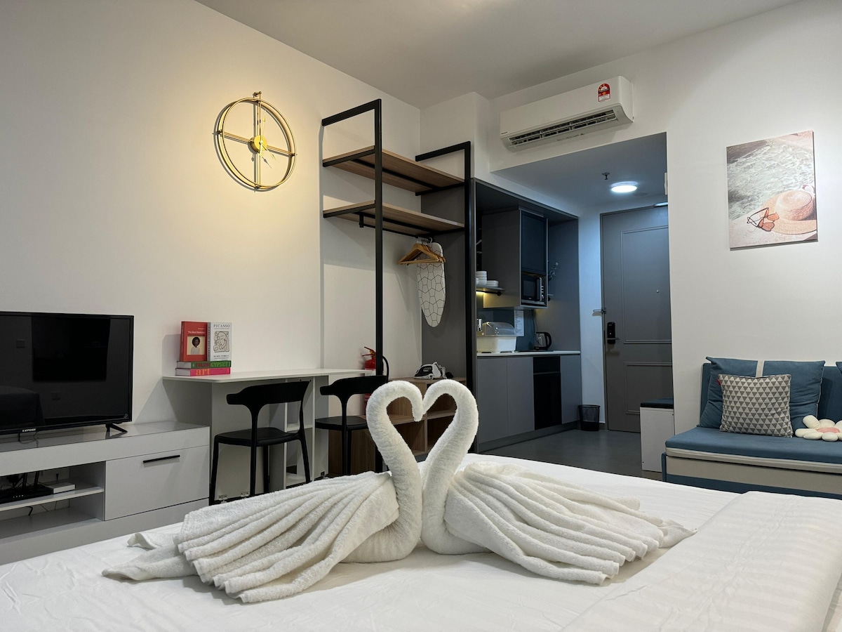 Tanto si viajas solo y buscas un refugio tranquilo como si sois una pareja que busca una escapada romántica, este cómodo y acogedor estudio ofrece la combinación perfecta de relajación y emoción urbana. La propiedad está convenientemente ubicada para una variedad de comodidades: • A 5 minutos a pie de cafeterías, supermercados, bancos, clínicas y salones de belleza. • A 10 minutos en coche de Desa Park City, IKEA, 1 Utama. • A 15 minutos en coche de FRIM, cuevas de Batu. • A 20 minutos en coche del aeropuerto de Subang, Mont Kiara, Bangsar, KLCC. • A 50 minutos en coche de Genting Highlands.