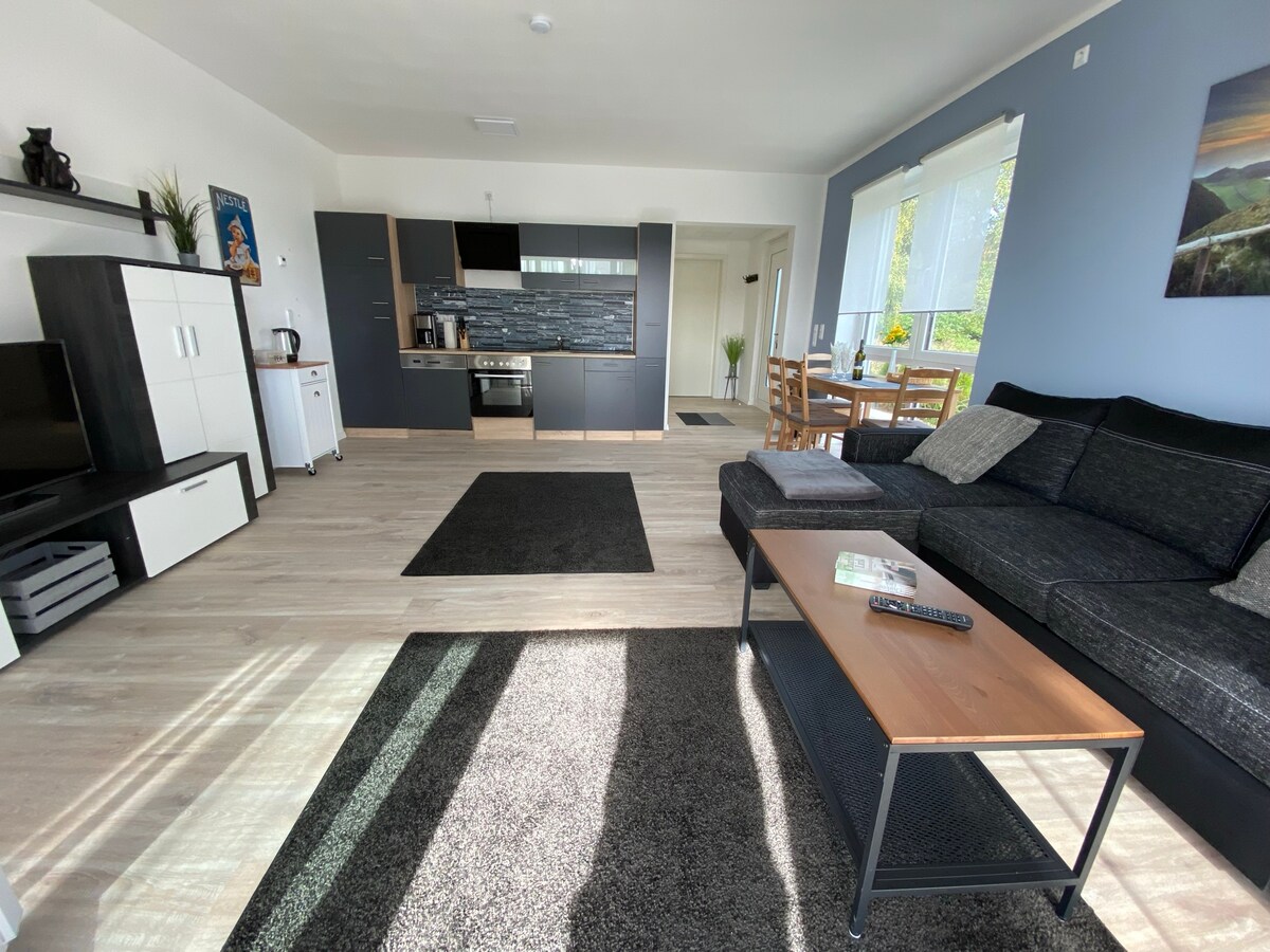 A place to arrive – calm, sunlit, and surrounded by nature. The SoonWald Loft is a bright, spacious apartment featuring two bedrooms with comfortable king-size beds, an open-plan living and dining area, and a fully equipped kitchen including spices and a Senseo coffee machine. A modern bathroom, lovingly handcrafted wooden furniture, and a balcony with seating create a warm, cozy atmosphere. Perfect for a romantic weekend for two or a relaxing retreat in the forest.