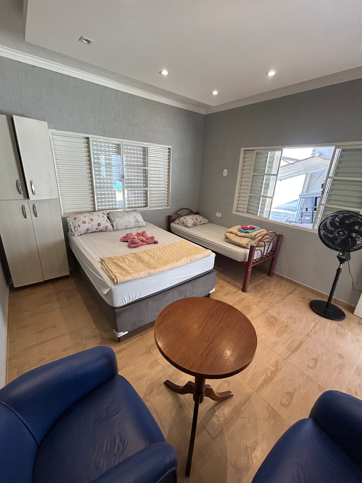 Casa cómoda y totalmente amueblada, ideal para parejas, familias pequeñas o viajes de negocios. Tiene 1 dormitorio con 1 cama doble y 1 cama individual, un espacio de trabajo, una sala de estar con sofá cama, una cocina equipada, un baño y un ambiente limpio y organizado. Ofrece ropa de cama y baño, conexión Wi-Fi y todo lo que necesitas para una estancia práctica y tranquila. Lugar tranquilo con una excelente ubicación, ofrece fácil acceso a todo lo que necesitas, perfecto para descansar.