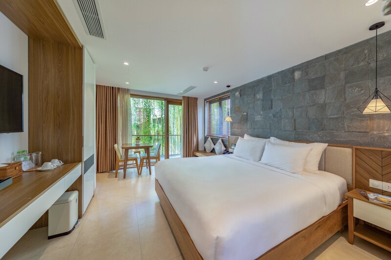 Estudio luminoso con balcón privado, perfecto para parejas que buscan comodidad y sencillez. Un acogedor estudio con iluminación cálida, interiores modernos y un balcón privado para disfrutar del aire fresco. Ideal para huéspedes que quieren un espacio acogedor y práctico cerca de My Khe Beach. Ubicado a solo 4 minutos a pie de la playa My Khe, Mixay Boutique ofrece una mezcla tranquila de comodidad moderna y simplicidad natural. Disfruta de estudios luminosos, cálidos toques de madera y relajantes rincones de jardín en toda la propiedad.