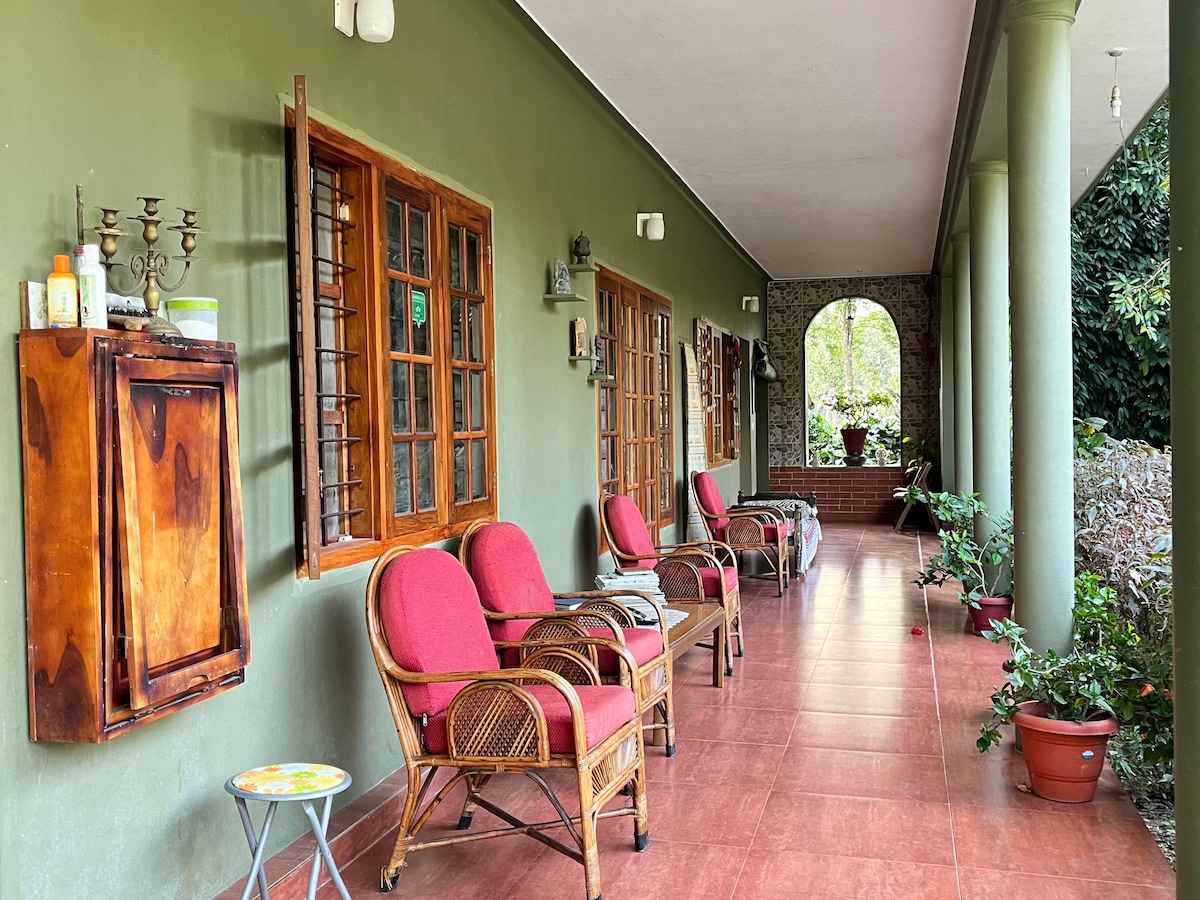 Esta tranquila villa se encuentra en una finca cafetera de 38 acres. La villa tiene 3 dormitorios grandes y una hermosa zona de estar con vistas espectaculares a la finca cafetera. Con una piscina, bicicletas, muchos juegos de mesa y un gran paseo por la finca, siempre tendrás mucho que hacer. La finca está bordeada por un lado por un bosque de templos. Para aquellos que deben trabajar, tenemos wifi. Visítanos y disfruta de la famosa hospitalidad de Kodava.