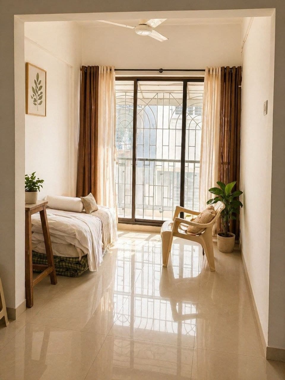 Acogedor apartamento de 1 habitación y 1 baño, a 8 minutos del muelle de Mandwa: ¡tu exuberante refugio verde! Perfecto para un fin de semana con brisa, una estancia relajante o una estancia más larga. Sala de estar iluminada por el sol, cama tamaño queen cómoda como una nube, balcón para el café de la mañana y un baño elegante con ducha de efecto lluvia. Wifi rápido, plancha, secador de pelo y elementos básicos incluidos. Relájate en un entorno tranquilo con playas y cafés cercanos, con Swiggy y Zomato entregando en la zona para mayor comodidad. Donde el trabajo se encuentra con el deseo de viajar, ¡ven a recargar energías junto al mar!