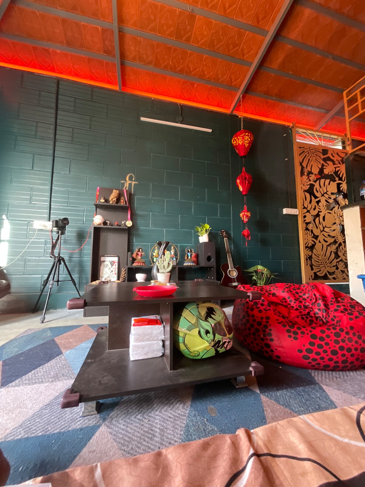 Ático con jardín rodeado de exuberante vegetación situado en una de las mejores ubicaciones de Bangalore (BTM Layout). Fácil acceso a centros comerciales, cines, supermercados, hospitales y paradas de autobús. Servicios - Agua las 24 horas. - Utensilios para cocinar. - Wifi de alta velocidad. - Cocina de gas. - Pequeños equipos de gimnasia. - Calentador solar. - Esterilla de yoga. - Pequeño jardín con terraza. - Espacio de trabajo. Servicios y zonas comunes - Entrada independiente al espacio. - El espacio está en el cuarto piso (sin ASCENSOR).