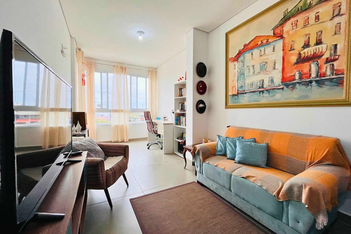 Apartamento moderno y completo a 500 m del mar en Meia Praia, Navegantes. Aire acondicionado, Wi-Fi rápido, cocina equipada, lavandería, ropa de cama y garaje interior sin cubierta. Ubicación estratégica: a 4 km del aeropuerto de Navegantes y a 12 km de Beto Carrero World. Ideal para familias, vacaciones, viajes de trabajo u oficina en casa. Región segura y tranquila, con mercado, farmacia y panadería cerca. Se aceptan mascotas de tamaño pequeño (hasta 2). ¡Reserva y disfruta de lo mejor de la costa de Santa Catarina!
