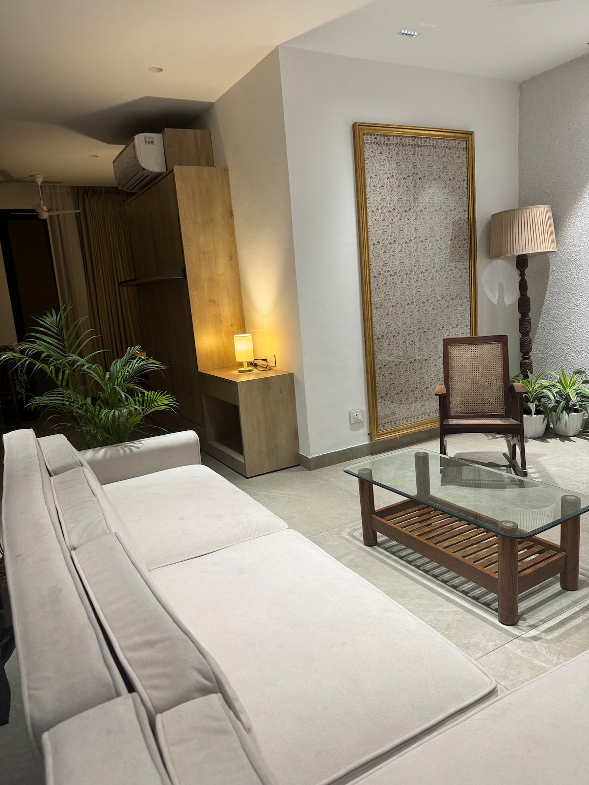 Este apartamento tipo estudio de planta abierta sigue principios de diseño minimalistas minimalistas. Equipado con una pequeña cocina, dos baños, una cama tamaño king, una cama tamaño queen, TV con Netflix, Hotstar, PrimeVideo, JioCinema y wifi gratuito, este espacio es capaz de alojar cómodamente a una familia de cuatro miembros. Nota: Este es un apartamento de planta abierta y NO hay dormitorios privados. El apartamento está en el segundo piso, por lo que tendrás que subir dos tramos de escaleras. NO SE PERMITEN 🙏🏽 FIESTAS NI FUMAR 🚭