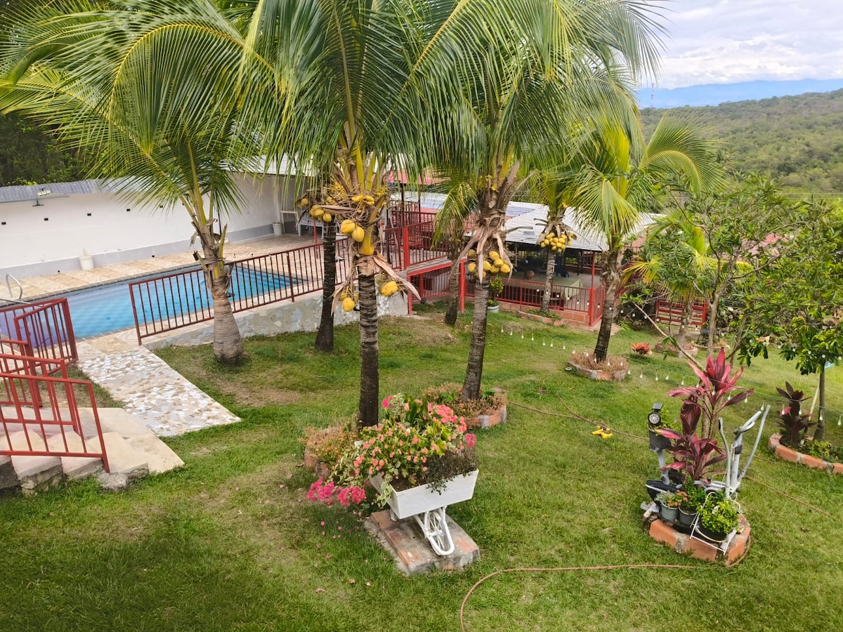 A solo 15 minutos de Neiva puedes disfrutar en este tranquilo lugar de amplias zonas verdes, kiosco para eventos, barbecue, zona de hamacas, canchas de voleibol y habitaciones confortables con aire acondicionado y baño privado.