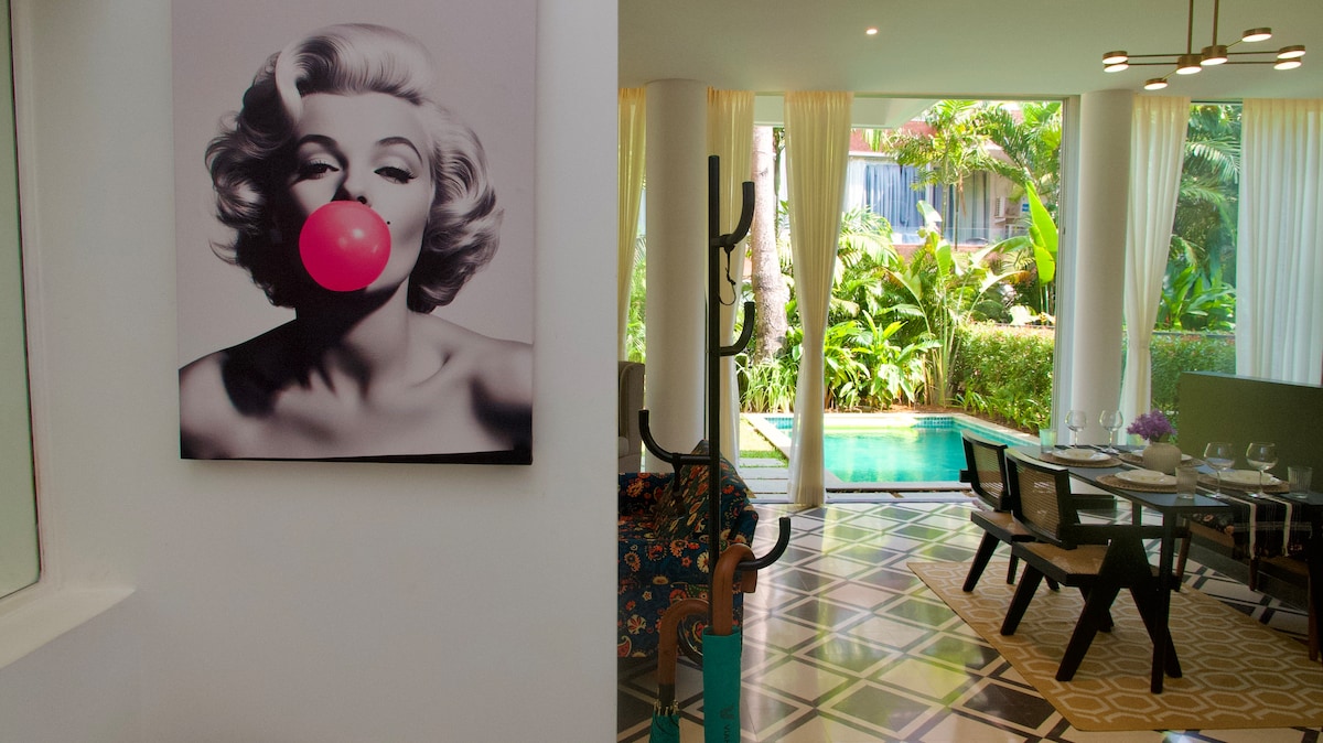 Bienvenido a una escapada elevada en Goa: una villa dúplex de 2BHK recién construida y hecha a medida con piscina privada y jardín, ubicada en Nerul, a pocos minutos de Candolim y de las playas, cafés y restaurantes más queridos de Goa del Norte. Inspirada en la vida tropical contemporánea, esta casa combina audacia diseño, luz natural, arte curado y comodidades modernas, lo que lo hace ideal para parejas, familias o grupos unidos que buscan una estancia relajada pero exclusiva.