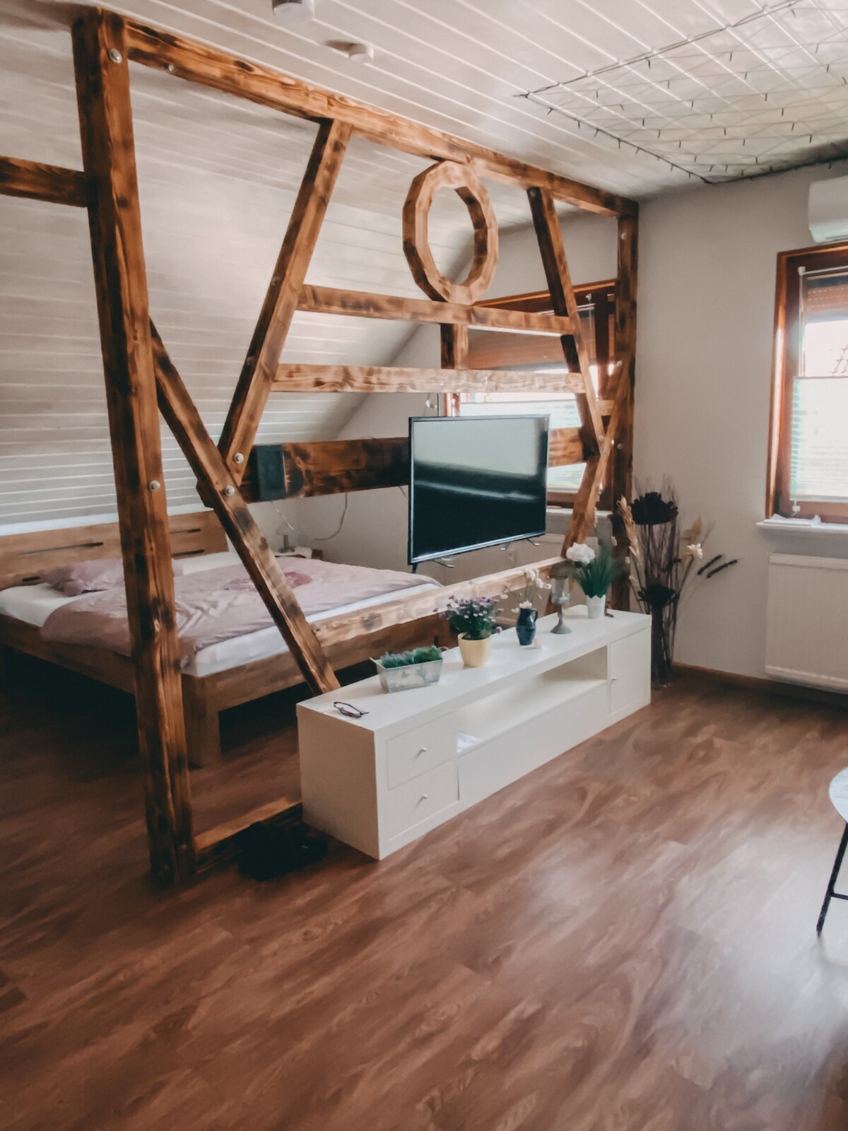 La casa de vacaciones está en una zona residencial tranquila con una plaza de aparcamiento justo enfrente de la casa. El apartamento está en el primer piso de una casa nueva y moderna de dos familias, tiene capacidad para 2-3 personas. Hay un baño grande con bañera, una acogedora sala de estar con sofá y TV, un dormitorio espacioso con cama doble (180x200), así como un armario grande y también una acogedora cocina-sala de estar con acceso al balcón.