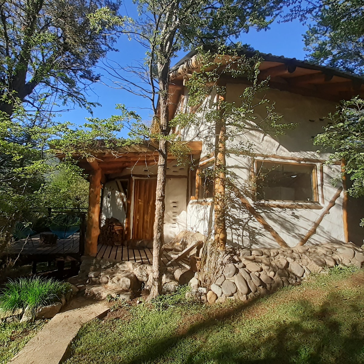 Por favor lea detalladamente toda la publicacion antes de reservar, Nos encontramos a 25 km de san martin de los andes por ruta 7 lagos (ruta 40), lo que hace una experiencia unica: Cabaña construida en troncos, barro y techo vivo (verde) totalmente equipada para 2 personas, cuenta con cocina completa, ropa de cama, toallas. wifi... Atencion personalizada, nosotros vivimos al lado estamos a disposicion de los huespedes La ubicacion es perfecta para disfrutar de la naturaleza, rios, lagos etc
