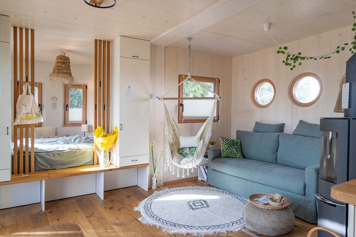 ¡Te damos la bienvenida a la hermosa tienda del lago! Soy BALU, una casa pequeña de 30², construida con materiales naturales y amueblada con cariño. Para mí, la sostenibilidad es muy importante, porque mi electricidad proviene del sol y se ahorra mucha agua a través de mi inodoro orgánico. Si hace más frío, mi estufa de pellets de madera crea una atmósfera especial. Mi enorme terraza te invita a relajarte y también hay mucho que descubrir en el jardín.