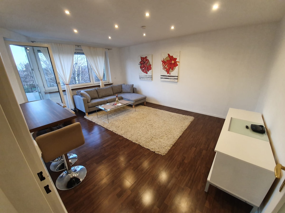 Bienvenido a nuestro moderno y luminoso apartamento de 45 metros cuadrados en el ático con todas las comodidades en una zona tranquila y con buenas conexiones de transporte. Aquí se pueden pasar tardes acogedoras y noches relajantes en una zona residencial tranquila para poder realizar excursiones de un día a la ciudad, a la feria y al campo al día siguiente con buenas conexiones. Las zonas verdes a poca distancia son ideales para dar relajantes paseos.