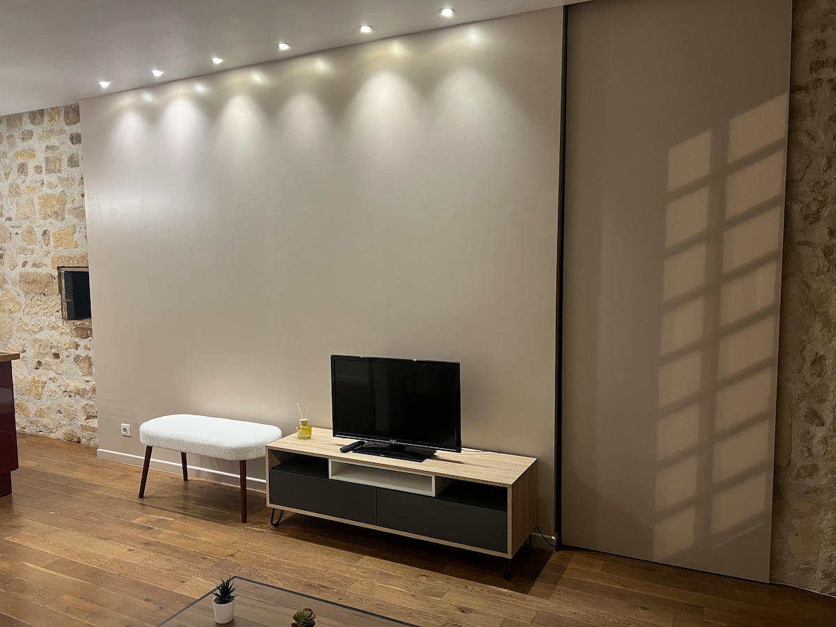 Estudio independiente totalmente reformado. Elegante y moderno, sus 28 m² están totalmente equipados: pequeña sala de estar con televisión, cama plegable para 2 personas, cocina equipada con barra americana y cuarto de baño con inodoro Zona tranquila, cerca de la estación de tren y el centro de la ciudad de Nevers y los centros de formación Para el verano, podrá disfrutar de una terraza privada y arbolada Se trata de mi segundo alojamiento en esta dirección, el anuncio del que sigue. «pequeño nido acogedor bis» Un placer.