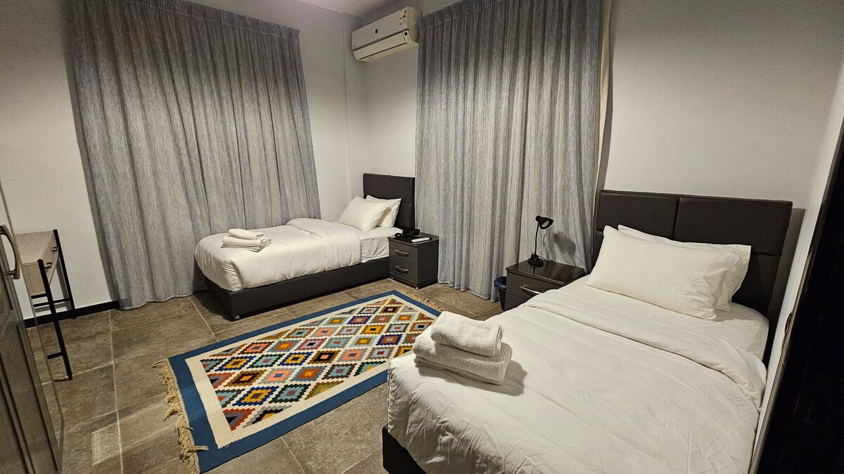Disfruta de una estancia lujosa y cómoda en este tranquilo apartamento de 2 dormitorios ubicado dentro de un complejo tranquilo y seguro con seguridad 24/7. El departamento está cuidadosamente diseñado con muebles modernos, amplios dormitorios y un ambiente relajante ideal para descansar y tener privacidad. Su entorno tranquilo lo hace perfecto para familias, parejas o viajeros de negocios. Convenientemente ubicado cerca del aeropuerto, los principales centros comerciales y las principales atracciones, ofrece un fácil acceso al tiempo que garantiza una estancia segura, tranquila y agradable.