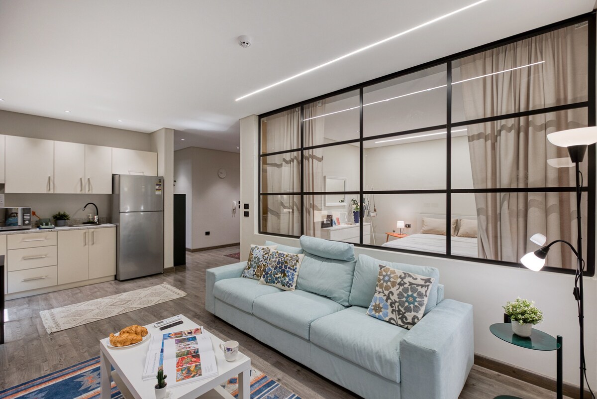 The listed price includes our Standard Package, covering electricity & high-speed Wi-Fi, prepared bed linen (no replacement), towels provided once only, emergency maintenance, a Smart TV with apps installed (no paid subscriptions), and spare key support. A Premium Package is available as a paid upgrade, including housekeeping on demand, premium channels (Netflix, beIN Sports, paid channels), full maintenance, 24/7 premium support, linen & towel replacement, and amenities refill.