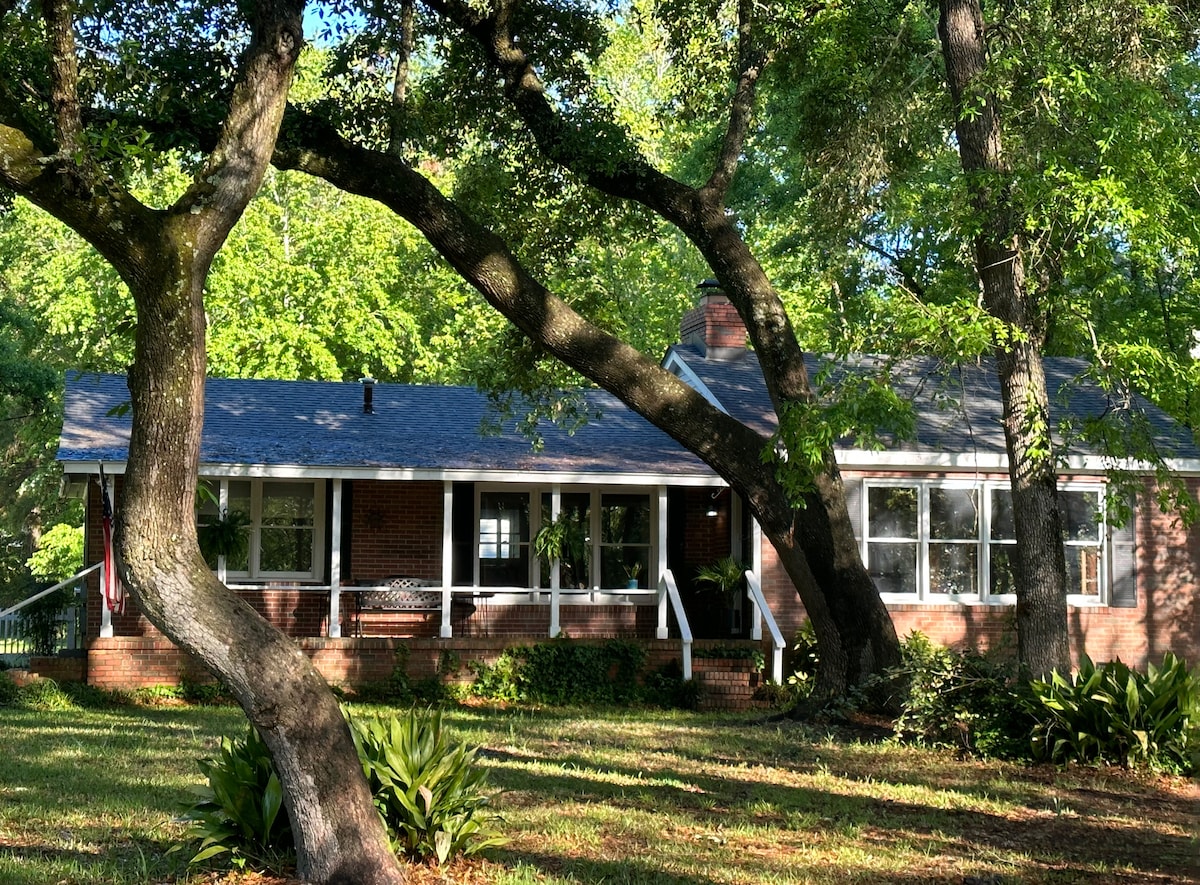 Casa de campo frente al mar situada en un acantilado con vistas al río NE Cape Fear. Una casa de campo de 400 pies cuadrados de planta abierta con todas las comodidades. Cocina totalmente equipada, cama tamaño queen, sofá cama, carpintería detallada en todas partes, techos altos, barra de granito, baño con ducha a ras de suelo, amplio porche cubierto con ventiladores y espectaculares vistas al río. Un refugio relajante o una escapada romántica. Rampa para botes al lado. Trae bote, kayak, SUP, para explorar el río... Playa y centro de la ciudad a 15-20 minutos. No hay acceso al río desde la propiedad.