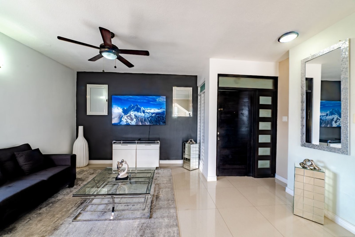 Penthouse de lujo en una ubicación privilegiada en Kingston Alójate en el lujo moderno en este ático 1BR/2BA en un complejo cerrado seguro las 24 horas, los 7 días de la semana, cerca de New Kingston, Half Way Tree y Downtown. Disfruta de una cama tamaño king, un sofá cama tamaño queen (capacidad para 4 personas), WiFi de alta velocidad, televisores inteligentes, una cocina totalmente equipada y lavandería en la unidad. Ideal para negocios y ocio, con estacionamiento gratuito y llegada autónoma las 24 horas. Cerca de restaurantes, embajadas y las principales atracciones. Adultos y niños mayores de 13años bienvenidos. ¡Reserva ahora!
