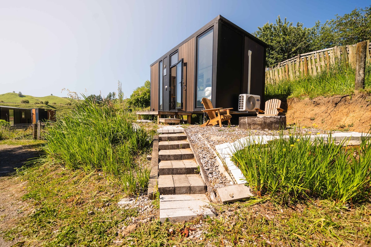 Escape to our newly built, stylish tiny home with a cozy queen bed and comfy double fold-out couch. Hangout by the firepit area, relax in the private sauna, unwind in the spa bath or refresh under the outdoor shower. With a covered outdoor patio area, enjoy sunset dinners with a view of Mount Taranaki. Located on the back section of our property, this private tiny home is only a 5min drive to scenic beaches, coastal walkway and restaurants and cafes of central New Plymouth.