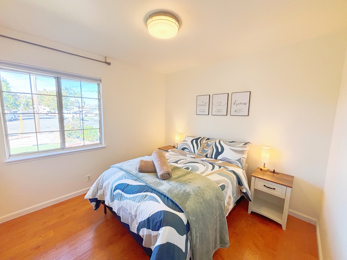 In the heart of California’s high-tech industry, this single-story house offers comfort to every guest, whether traveling for business or leisure. Easy access to the 880 freeway and Dumbarton Bridge makes it convenient to reach major tech companies like Tesla, Meta, Google, and Apple, as well as Stanford University and the SFO/OAK/SJC airports in Silicon Valley.