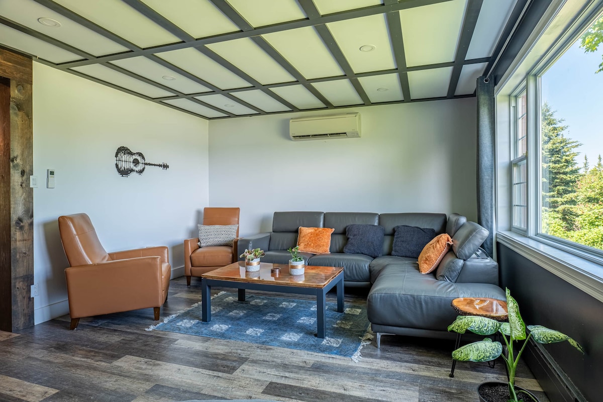 Lleva a tus amigos o a toda la familia a esta increíble propiedad que tiene un montón de espacio para divertirse, ver puestas de sol y observar las estrellas. Disfruta de vistas al mar y a las tierras altas. A poca distancia a pie de la playa de la Reserva Natural de Petit E'tang y del río Cheticamp. Perfecto para nadar, practicar deportes de remo y pescar. A 8 minutos de todos los servicios, incluida la entrada al parque, golf, restaurantes, tiendas de comestibles y la mina de yeso. Cerca del sendero Skyline, la playa Chimney Corner y los campos de golf de renombre mundial en Inverness están a solo 50 minutos.