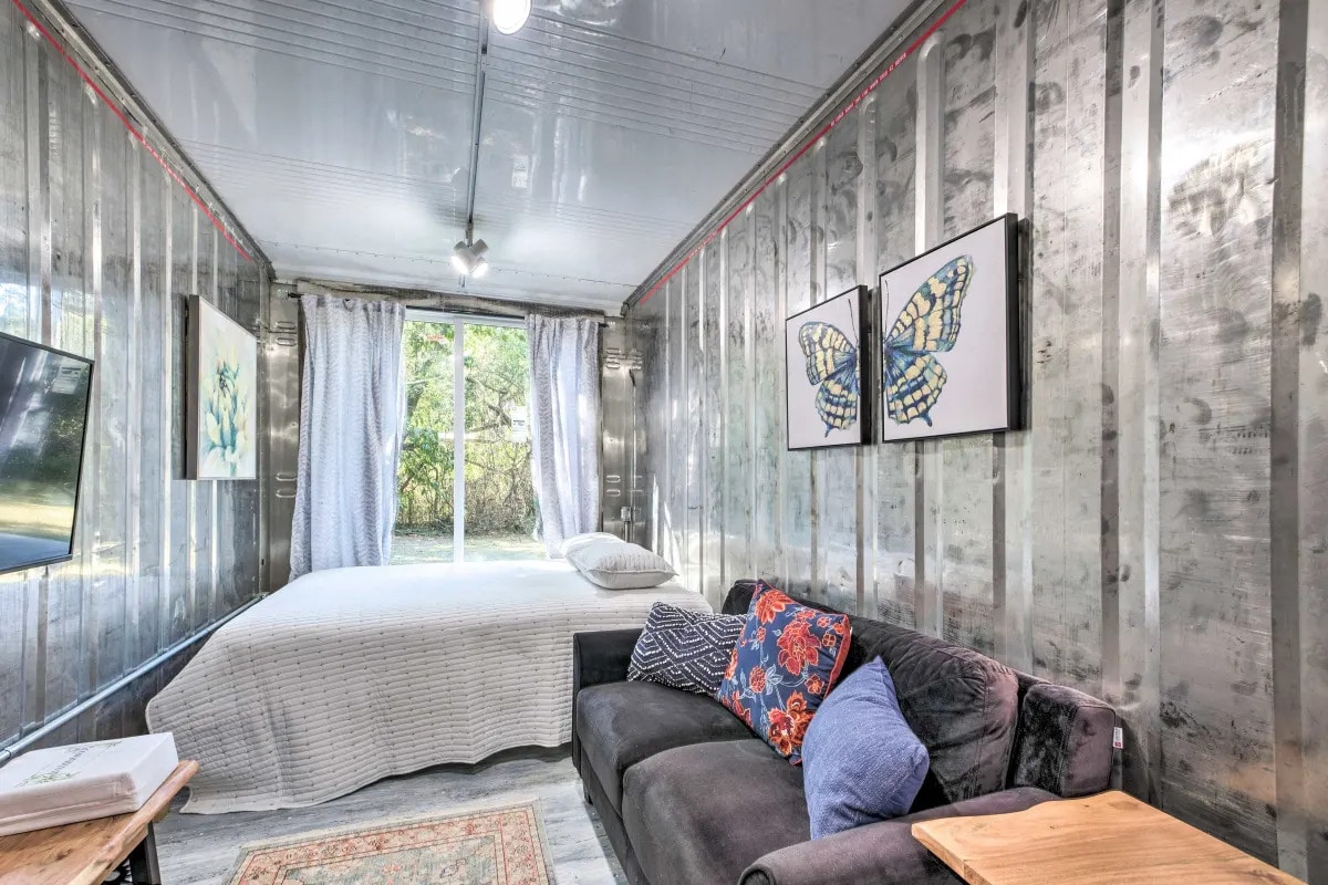 Nuestra casa está a menos de una milla de UFHealth en Shands y del Centro Médico para Veteranos Malcom Randall. Estamos a una milla del campus de la Universidad de Florida. Sorprendentemente, también está a un corto trayecto en bicicleta (1-2 millas) del centro de Gainesville. Cerca de Depot Park, estudios de arte, restaurantes, locales de música y teatro. También hay parques naturales cerca. La ventaja es que vivimos en 2 acres, escondidos en un barrio tranquilo. Nuestra piscina es profunda y fresca; tenemos bicicletas para prestar. El contenedor es perfecto para un viajero solo o una pareja.