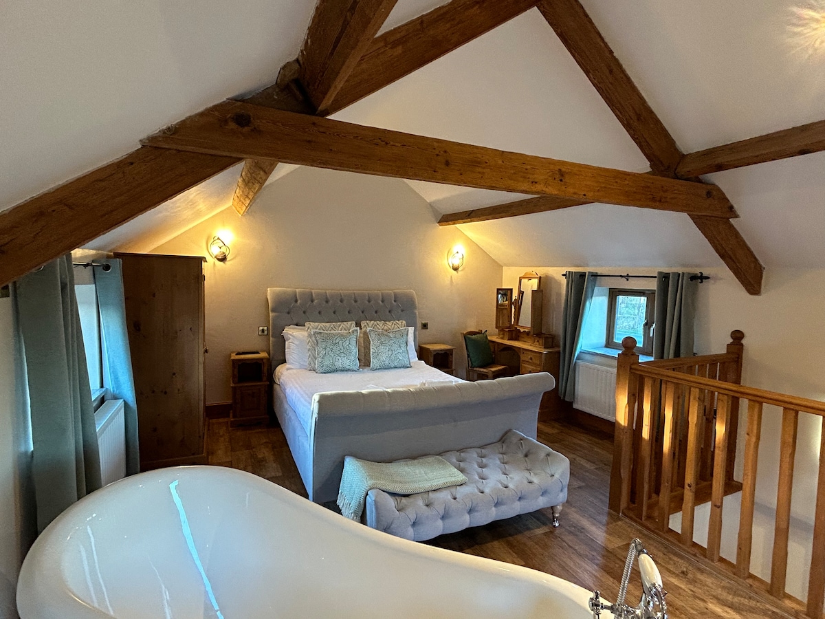 Cerca de los servicios locales. Se admiten perros. INFÓRMENOS EN EL MOMENTO DE LA RESERVA, cargo de 35 £. Wifi, aparcamiento, vigas a la vista, techo abovedado. Cocina moderna con lavavajillas. Amplio y lujoso baño con ducha en cabina y bañera de doble punta. Sala de estar con sofás de cuero, TV y altavoz Bluetooth. Tiene una cama tamaño king. Con opción de cama individual. APARCAMIENTO PRIVADO EN LA PROPIEDAD