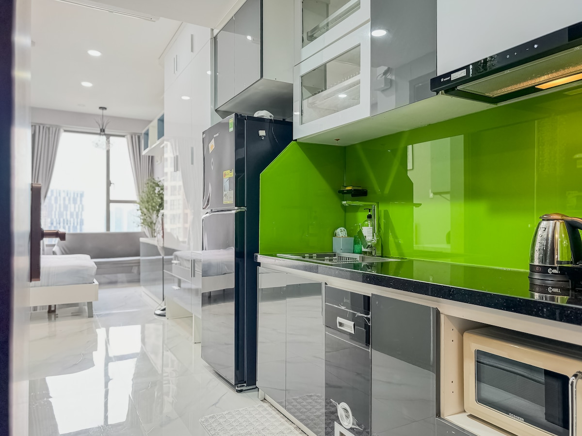 Moderno ✨ apartamento de 1 dormitorio Landmark 6, junto a Landmark 81 ✨ Ubicado justo al lado de Landmark 81, el edificio más alto de Vietnam, el apartamento ofrece un espacio moderno, acogedor y cómodo: • 🛏 1 dormitorio espacioso, cama suave, almohada estándar de 5 estrellas, ventana grande y luminosa. • 🚿 Baño moderno y limpio, equipado con calentador de agua. • 🌳 Instalaciones circundantes: Vinhomes Central Park, piscina, gimnasio, supermercado, restaurante, cafetería. • 🚗 Cómodo transporte al centro del Distrito 1 a solo unos minutos.