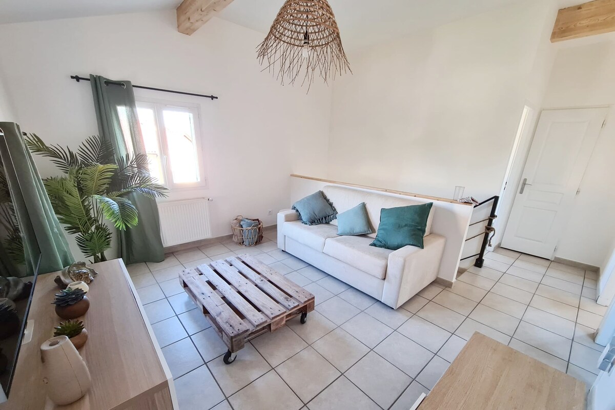 ¡Disfrute en familia o con amigos de toda la casa en dúplex, buhardilla e independiente, con una terraza privada, que ofrece buenos momentos en perspectiva! En las cercanías: aeropuerto, tiendas, OL vallée, Eurexpo, estación de tren TGV Part Dieu, tranvía, autobús, parque MIRIBEL, Lyon, Pérouges, Pilat. Para hacer su estancia agradable, ponemos a su disposición una cocina equipada, vestidor, ropa de cama, WIFI, kit de bebé (trona, cuna) ⚠️ Aparcamiento exclusivamente exterior ⚠️
