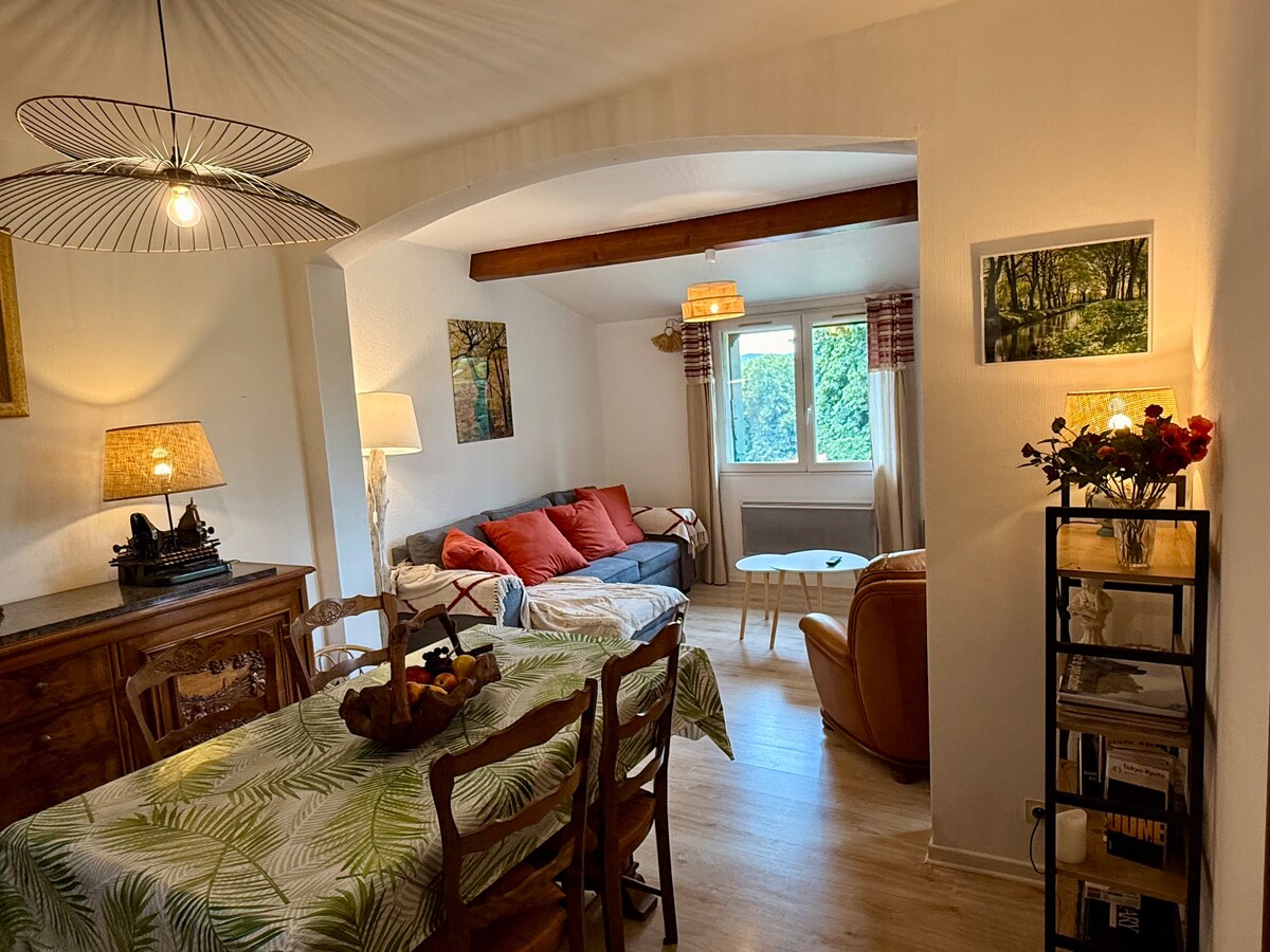 Encantador y tranquilo apartamento en un pequeño edificio en el centro de la ciudad de Castres. Apartamento totalmente equipado con zona de día, zona de noche, cocina y baño, jardín privado y aire acondicionado reversible y wifi. Cerca de todos los servicios, ocio, cultura y naturaleza. Aparcamiento gratuito en la calle. Autobús urbano cercano y gratuito. Se puede hacer todo a pie desde el airbnb. Será un placer reservar una cálida bienvenida en nuestro Airbnb. Marine y Jean-David 😀