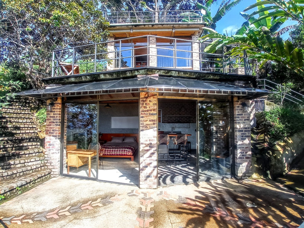 "Suite entre los árboles", diseñada por el artista Denis Aleksandrov. Cama queen, área social, cocina equipada. A 1700 metros, en la cima del cerro , la casa de autor ofrece vistas panorámicas hacia El Tablazo y los valles de San Francisco, la Vega y Gualivá. Con suerte, divisarás el Parque de los Nevados y la fumalora del volcán Nevado del Ruiz. Clima cálido y noches frescas y sin zancudos.