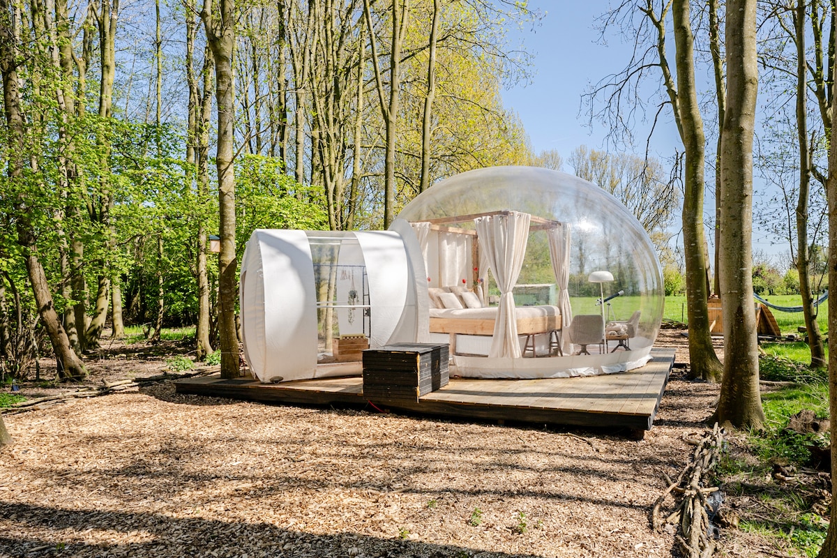 Tienda de campaña burbuja en la naturaleza con jacuzzi cerca de Ámsterdam