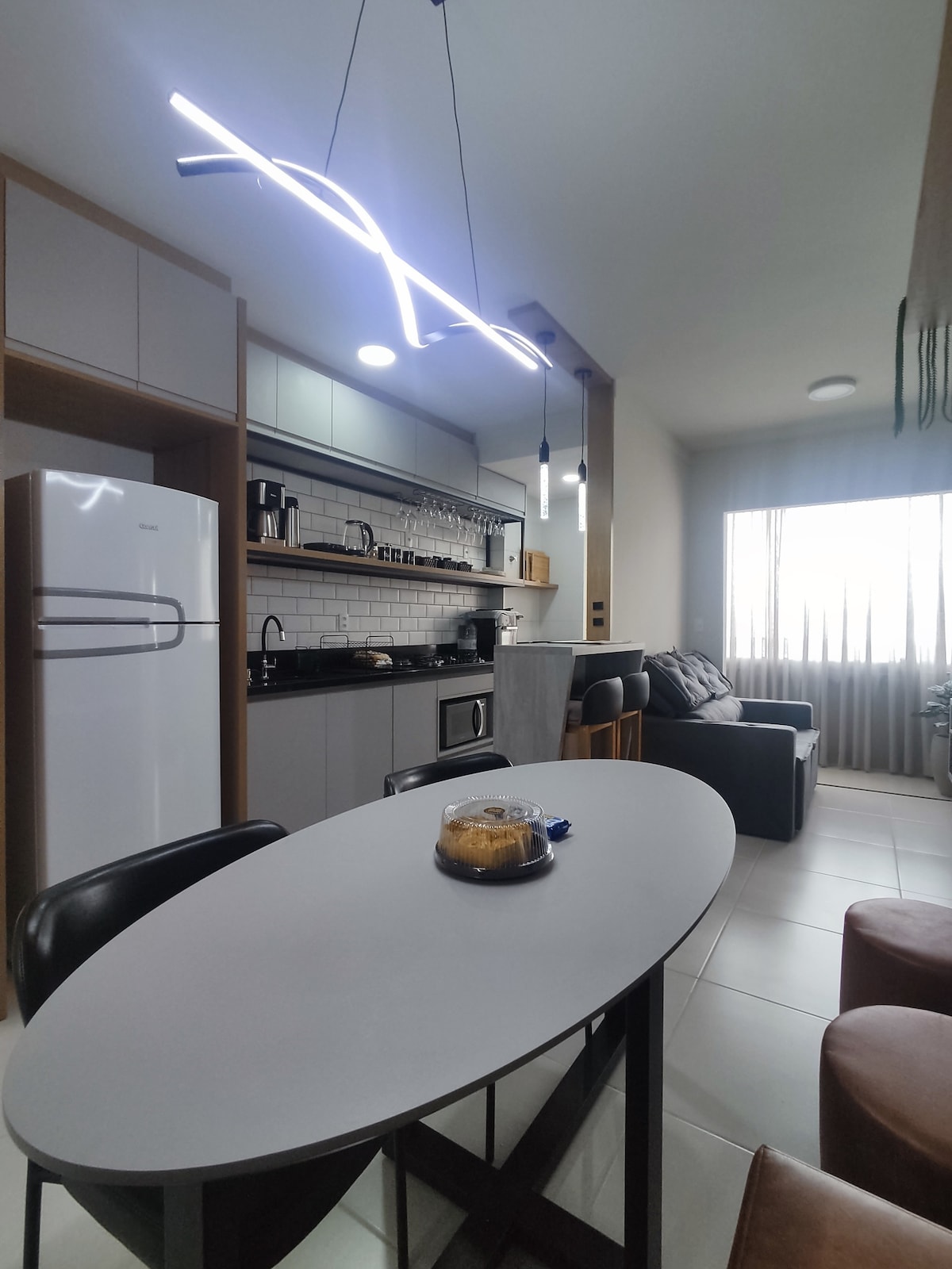 Sofisticado apartamento tipo estudio ubicado a 800 metros del parque Vila Germânica, lugar de eventos como el Oktoberfest. Rodeado de restaurantes, bares y supermercados. Todo para su comodidad: Smart TV 50" Samsung, aire acondicionado split, ducha de gas, wifi fibra 240mb, cocina completa con heladera Brastemp, microondas, horno, estufa, campana extractora, cafetera, purificador de agua, lava y seca, armarios, y por supuesto ¡una cama queen con el mejor colchón!